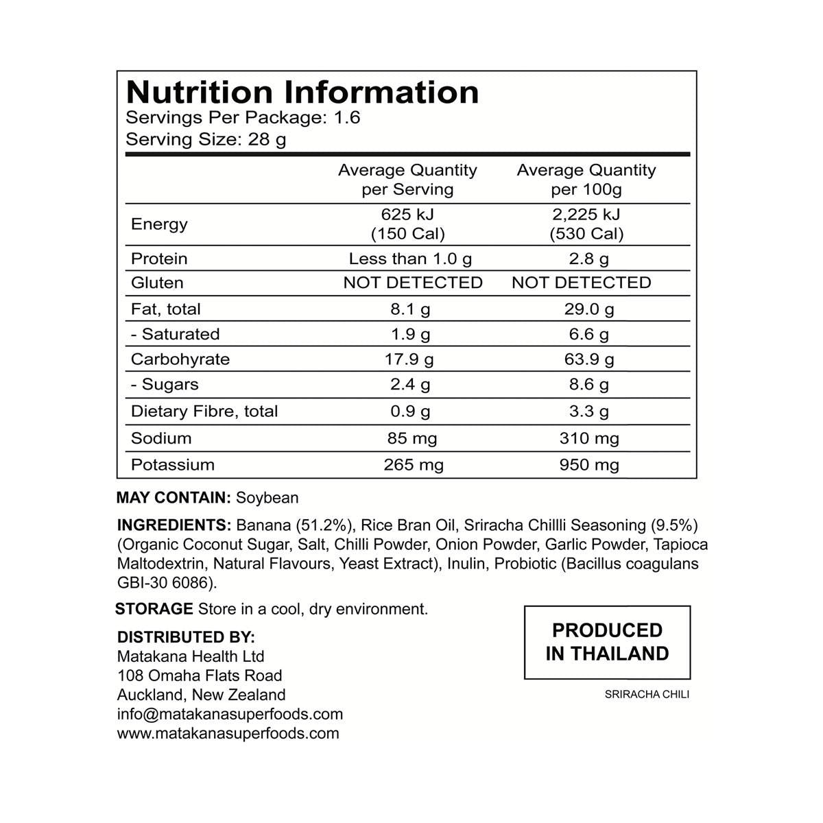 Banana Joe Banana Chips Sriracha are seasoned with chef-created flavours, using only sustainably grown Hom Thong bananas native to Thailand. The bananas are sourced from various small-scale farmers. Banana Joe is the first brand to create a real fruit chip that actually tastes like a proper potato chip: thin, crispy, and full of flavour!