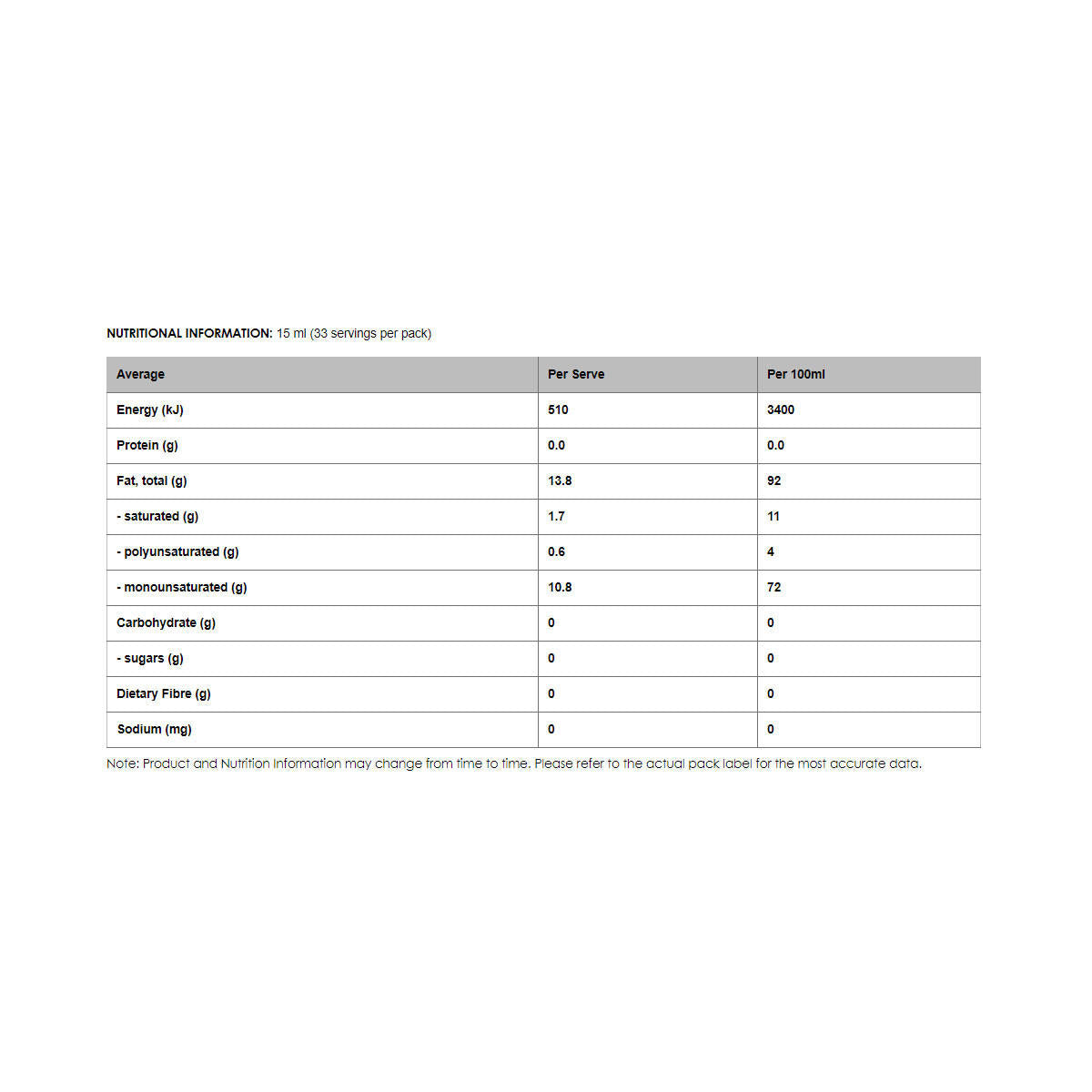 Olive oil is a full-flavoured oil recommended for low to medium heat cooking. It has a maximum heat point of 170°C. Olive oil is ideal for gently heated sauces and dressings and may be used for sautéing meats, stir-frying and medium-heat baking. Great on salads and fresh foods too.