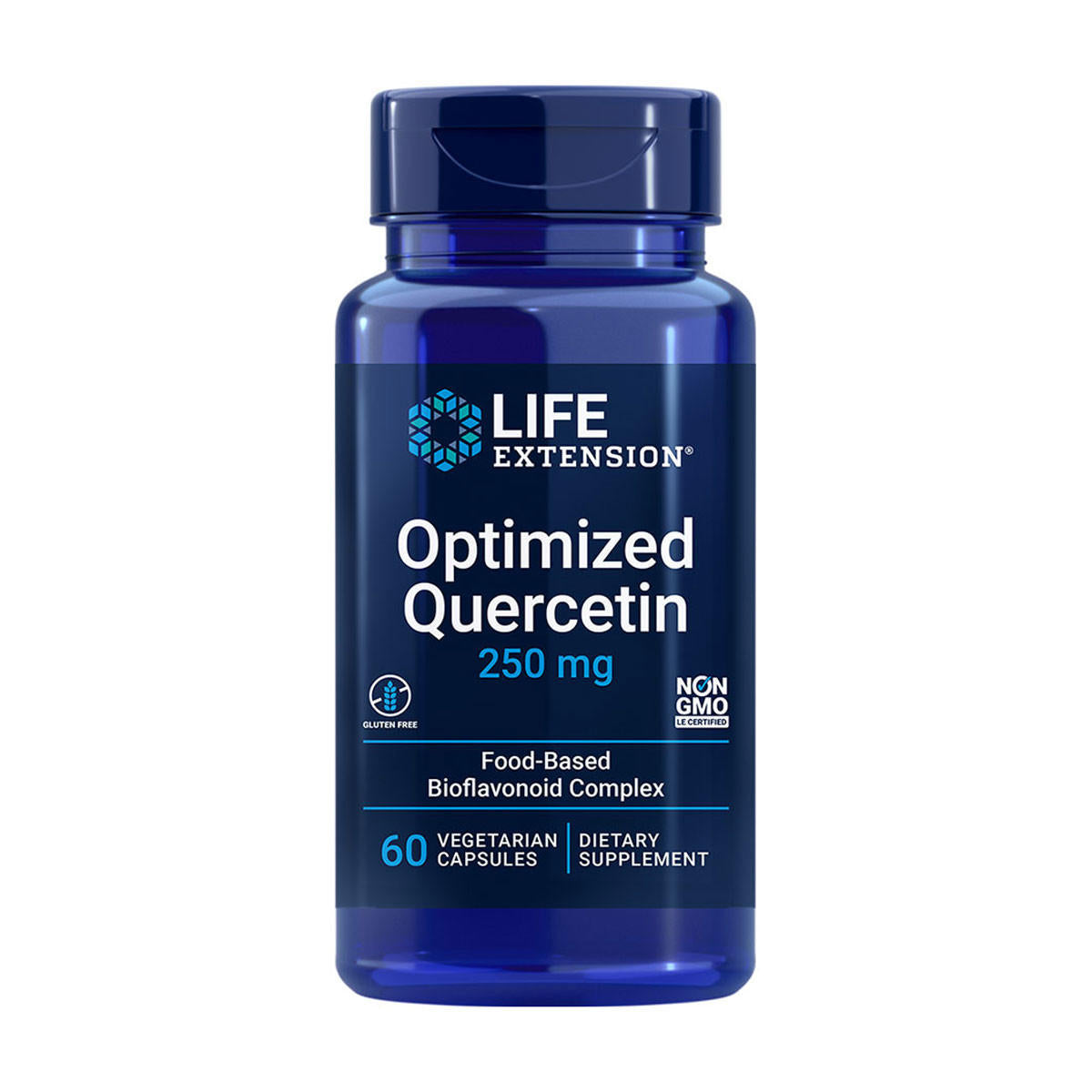 Life Extension Optimized Quercetin delivers 250 mg standardized quercetin in a bioavailable superfood supplement blend with vitamin C and camu-camu berry extract to support a healthy immune response. Quercetin is a bioflavonoid found in red grape skins, red onions, apples, buckwheat and other food sources. Quercetin supports healthy cellular function, cardiovascular health and has also been shown to encourage a healthy immune response, especially to seasonally changing environments.