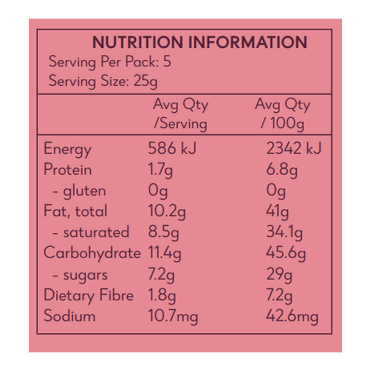 Rich raw cacao and tart freeze dried raspberry mixed with chewy coconut - melt in your mouth decadence.