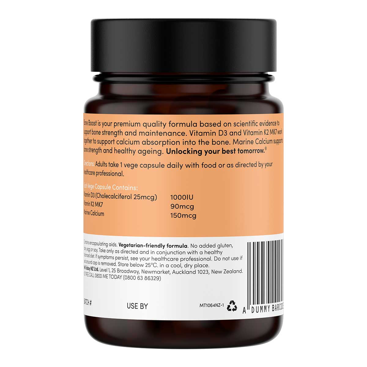 Me Today Bone Boost is your premium quality formula based on scientific evidence to support bone strength and maintenance. Vitamin D3 and vitamin K2 MK7 work together to support calcium absorption into the bone.