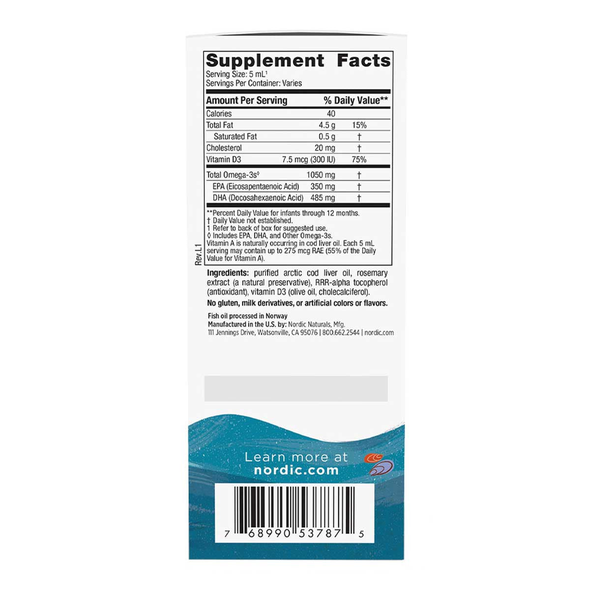 Nordic Naturals Baby DHA Liquid is made from our Gold Standard 100% Arctic Cod Liver Oil. Nordic Naturals Baby's DHA is an easy and effective way to ensure that growing babies 5-35 lbs (2-16kg) get the DHA they need for healthy development.