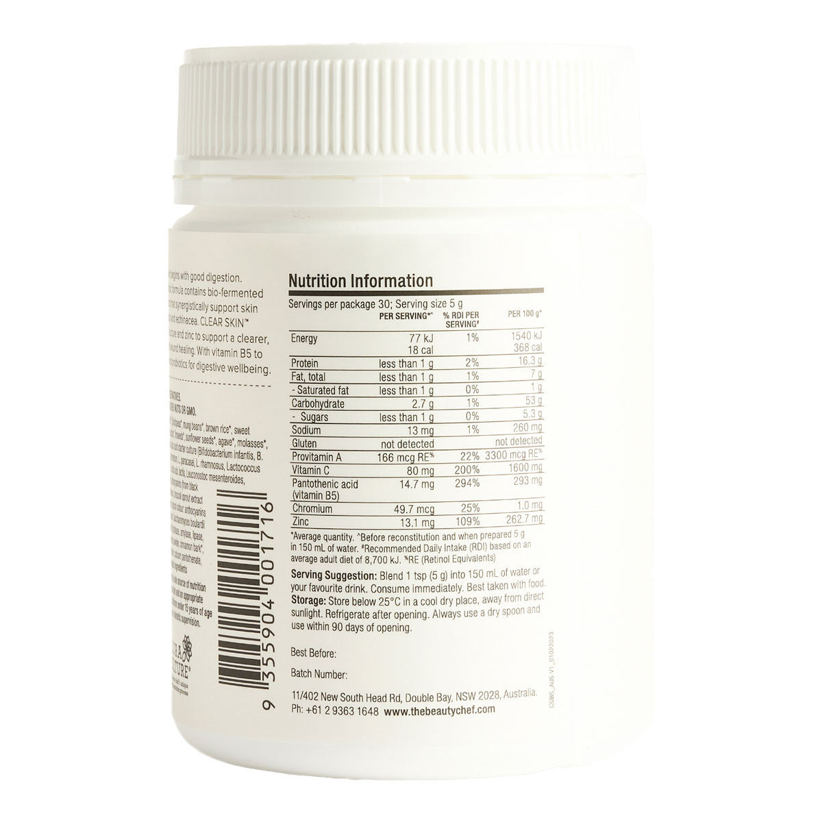 The Beauty Chef CLEAR SKIN Inner Beauty Support is a daily beauty powder with a delicious apple-cinnamon flavour. CLARIFY Inner Beauty Support is made with certified organic wholefoods and extracts including herbal ingredients broccoli sprout, burdock, dandelion and echinacea.