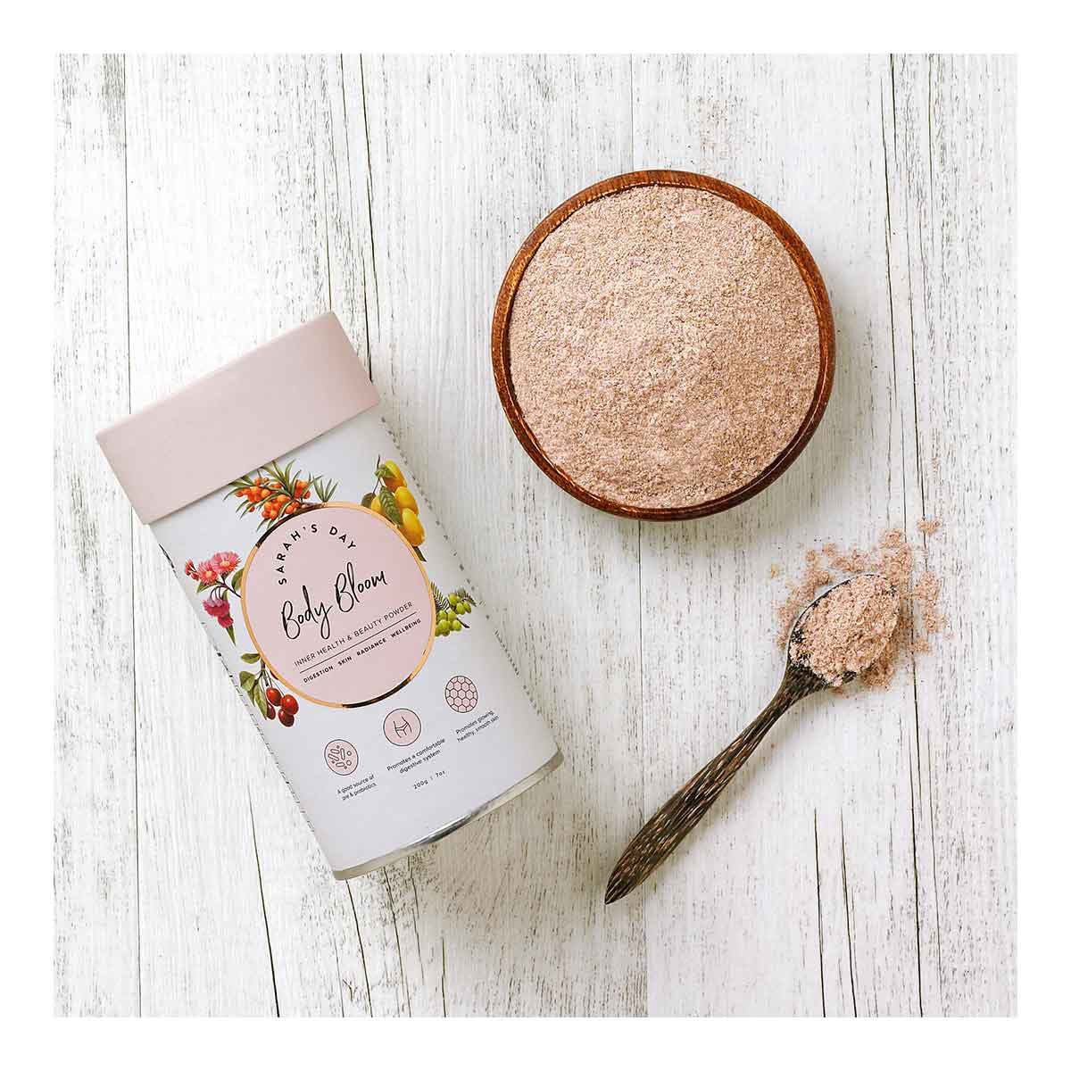 Tropeaka Sarah's Day Body Bloom is a delicious inner-health and beauty powder that supports beautiful skin, nails and hair, along with supporting digestive wellbeing.